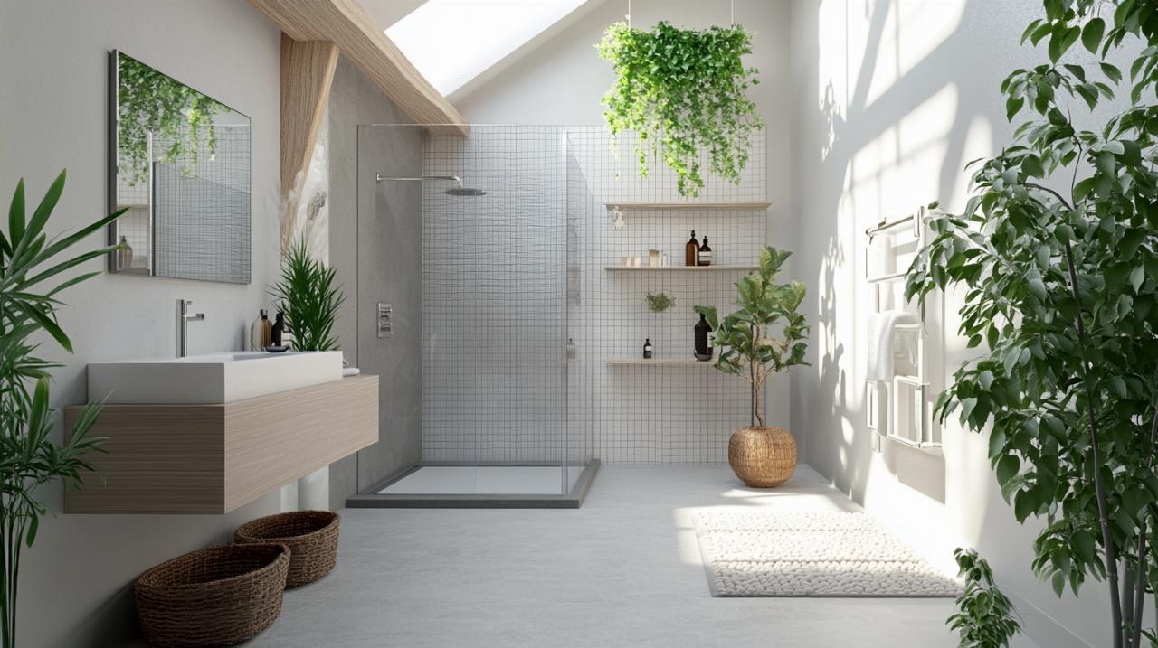 Les finitions déterminent la durabilité et l'esthétique finale de l'installation. Le carrelage demeure le revêtement privilégié pour les zones humides grâce à ses propriétés imperméables et sa facilité d'entretien. Le choix des matériaux doit privilégier la légèreté pour ne pas surcharger la structure des combles. Les carreaux de petit format facilitent l'adaptation aux angles et aux raccords complexes imposés par la configuration sous pente.
